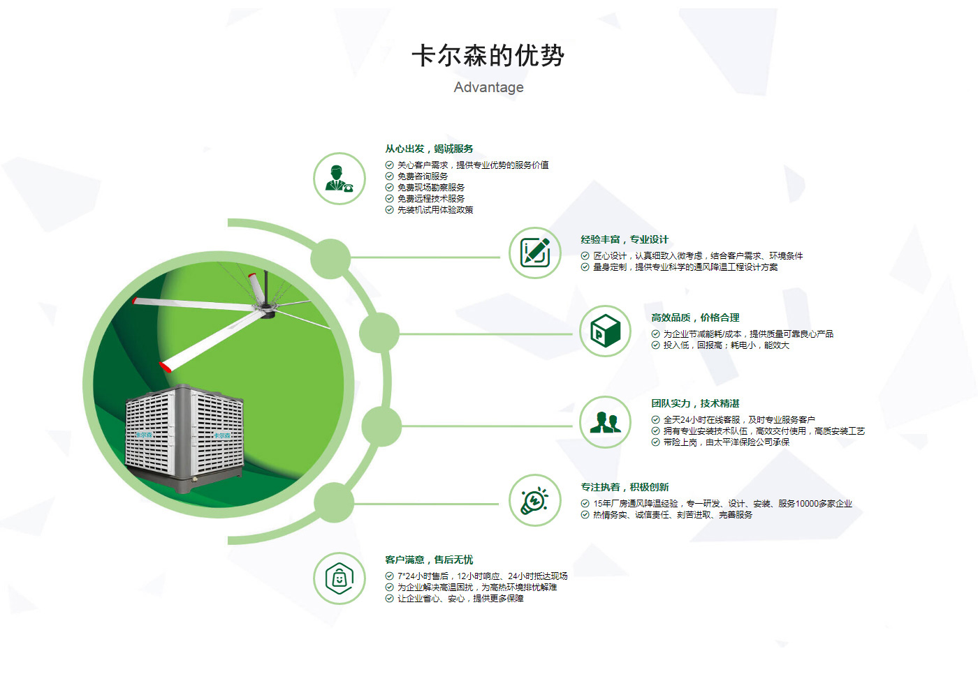 ??晉江市卡爾森機(jī)電設(shè)備有限公司是一家集設(shè)計(jì)、制作、銷售、安裝工業(yè)通風(fēng)設(shè)備、中央空調(diào)、節(jié)能環(huán)保空調(diào)、脈沖除塵設(shè)備、環(huán)境凈化工程、等環(huán)保工程企業(yè)。并提供環(huán)境影響評價(jià)、環(huán)保工程總承包、環(huán)保工程設(shè)計(jì)、環(huán)保工程運(yùn)營、環(huán)保工程成套設(shè)備等一站式服務(wù)。公司一直誠心服務(wù)于工業(yè)廠房的通風(fēng)設(shè)施,我們的產(chǎn)品:“品種齊全、質(zhì)量優(yōu)越”。根據(jù)客戶的需求精心設(shè)計(jì),高質(zhì)量的制造,力求使每個(gè)產(chǎn)品都達(dá)到合理耐用、節(jié)能環(huán)保。科學(xué)的設(shè)計(jì)和精美高品質(zhì)的產(chǎn)品,完善的服務(wù)系統(tǒng),加強(qiáng)售前、售中、售后服務(wù),對顧客在使用商品中出現(xiàn)的各種問題及時(shí)解決,使顧客無后顧之憂。產(chǎn)品廣泛適用于各類型制造業(yè)、機(jī)械類、五金冶煉、食品、化工、電子、紡織、噴涂、娛樂以及服務(wù)等場所。我們秉承“質(zhì)理過關(guān)、價(jià)格合理、交期準(zhǔn)時(shí)、服務(wù)周到”而受到新老客戶的好評和信賴。我們堅(jiān)持“客戶至上、質(zhì)量上乘”為宗旨,努力工作,為您換來潔凈美好的明天。卡爾森愿以過硬的質(zhì)量,良好的信譽(yù)同各界朋友一起開創(chuàng)更加輝煌的未來。